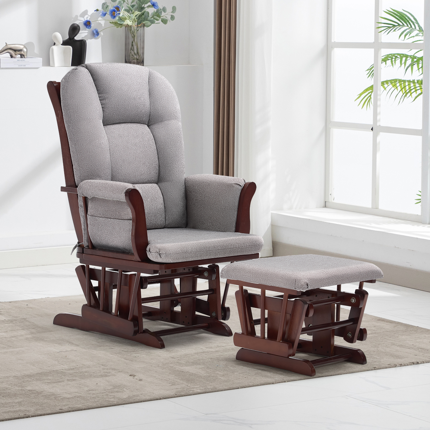 Chaise berçante avec pouf Aiden – Esspreso/Grey